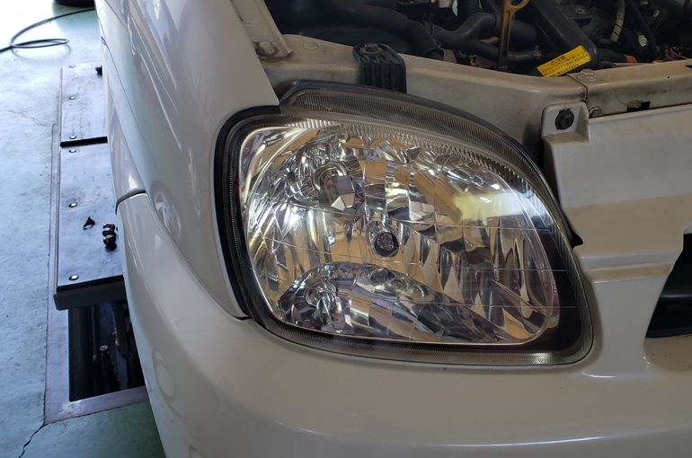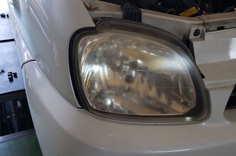 車検入庫のプレオ ヘッドライトの黄ばみ落とし 群馬県太田市W様