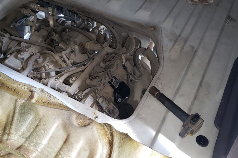 ヘツドカバーのパッキンとプラグホールのパッキンからオイル漏れも発見