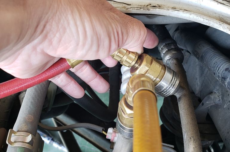 原因は高圧ホースからガスが漏れていました